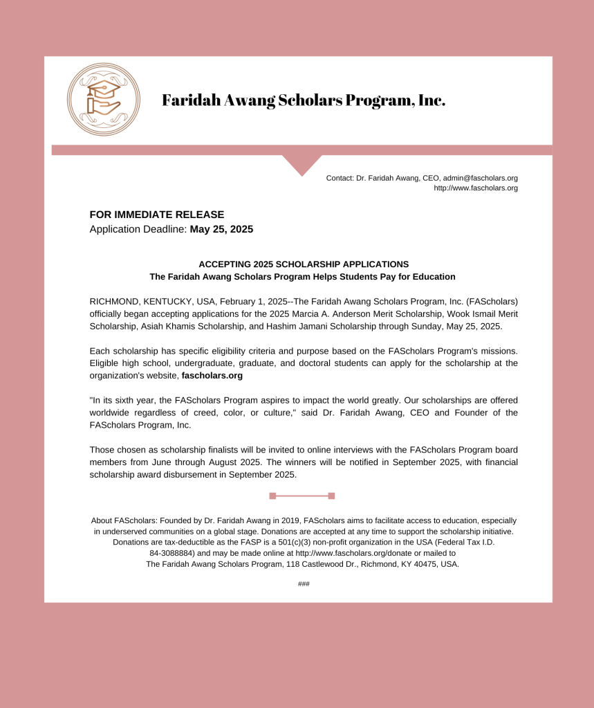 Visit our website: Faridah Awang Scholars Program, Inc.